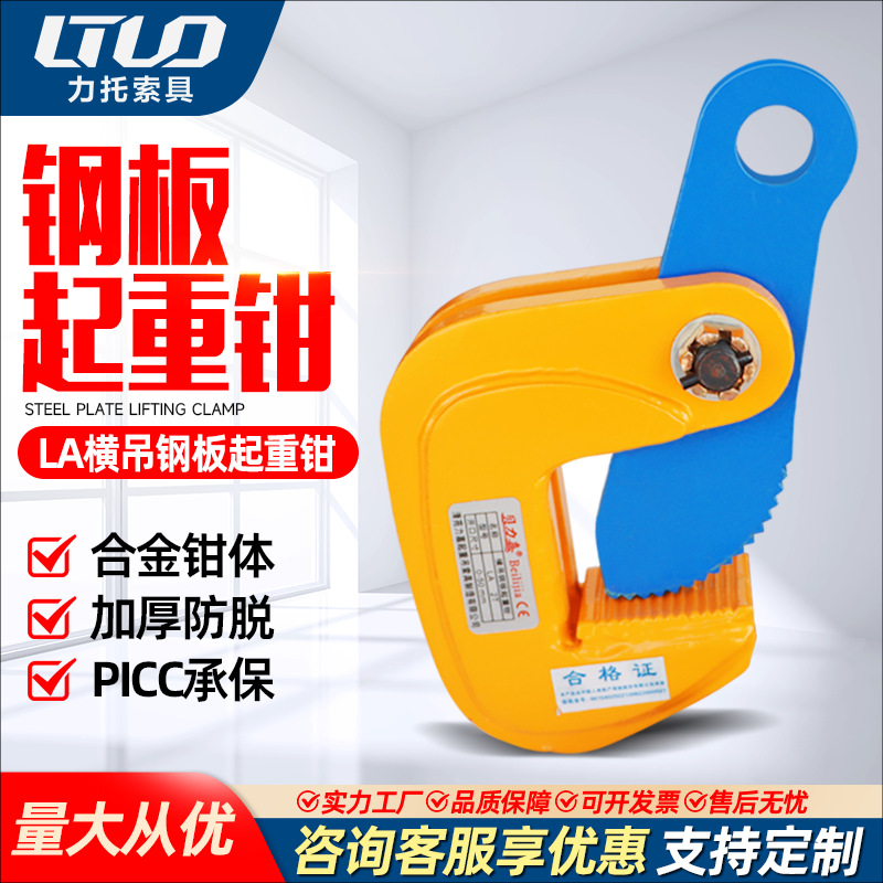 LA series klem pengangkat pelat baja angkat, klem pengangkat baja paduan karbon rendah, klem pengangkat kait datar horizontal