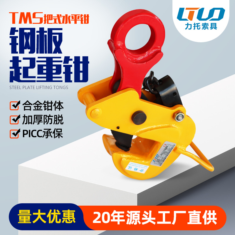 Pabrik Langsung Menangani Penjepit Mengangkat Horizontal Tipe Pegangan TMS Penjepit Mengangkat Baja paduan Penjepit Plat Baja Tingkat 1 Ton 5T
