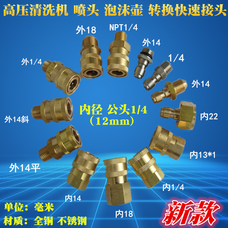 Mesin Pembersih Tekanan Tinggi Sambungan Air Pistol Air Panci Busa Inti Inti Nozzle Nozzle Sambungan Cepat 1/4 Sambungan Cepat 12mm Diameter Dalam