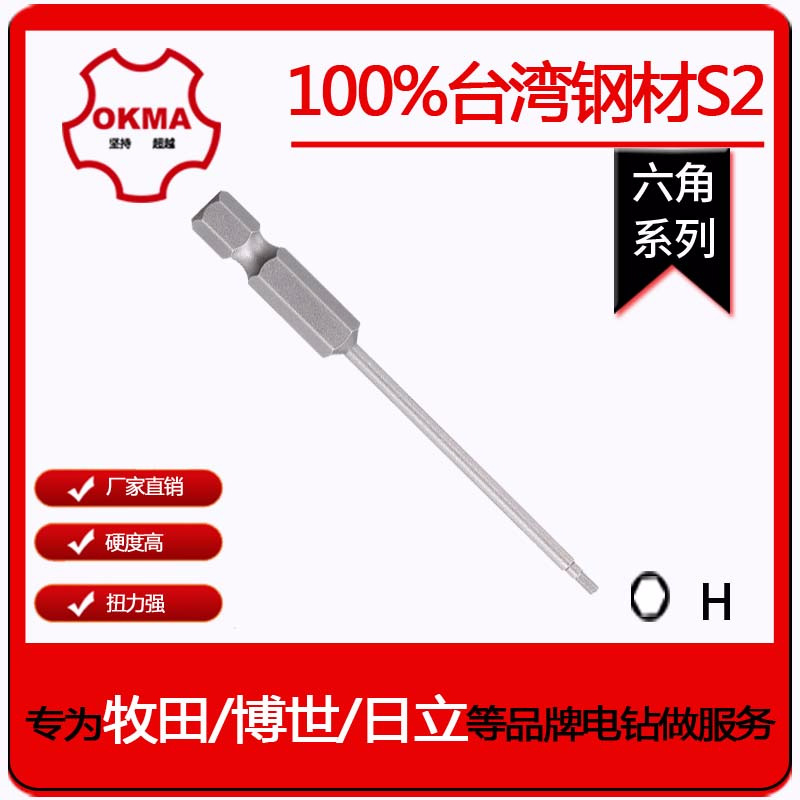 OKMA kepala obeng elektrik, kepala obeng heksagonal pabrik seri panjang 65-100