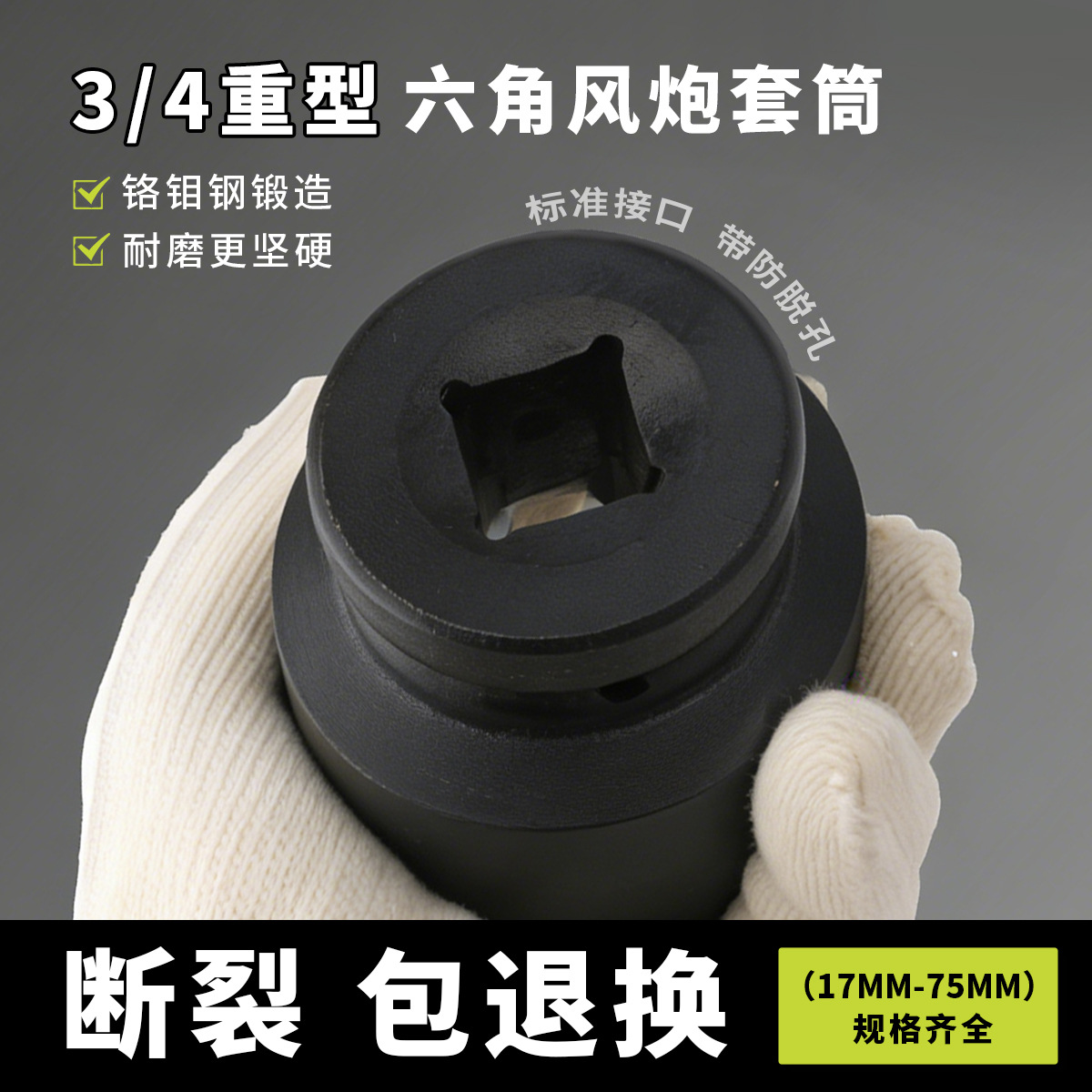 Kunci pas elektrik pneumatik, lengan pistol udara sedang 3/4 inci, kunci pas elektrik, kepala lengan tebal heksagonal, antarmuka 19MM