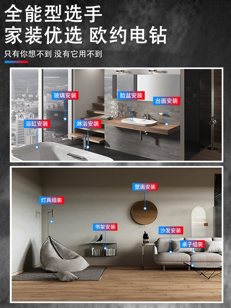 Bor Impak Multifungsi Baterai Lithium Tanpa Kabel untuk Perdagangan Luar Negeri, Bor Impak Serbaguna untuk Pengeboran dan Dekorasi, Bor Listrik Grosir