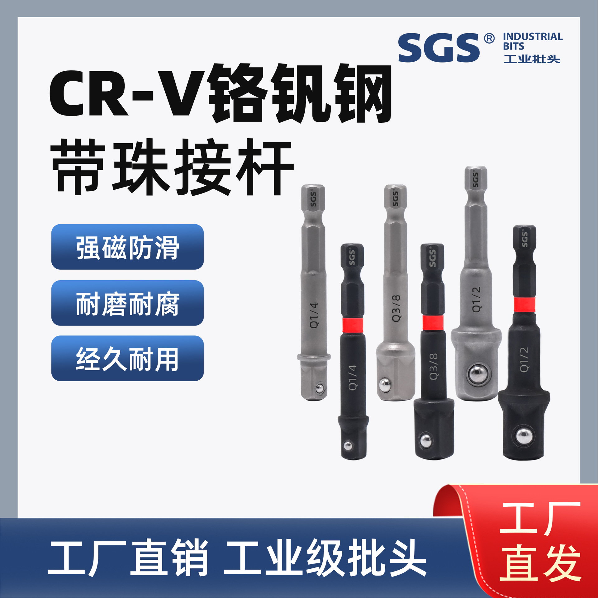 Pesan pabrik bahan CRV warna alami semburan pasir batch kepala ekstensi aksesori batang dengan manik-manik batang ekstensi