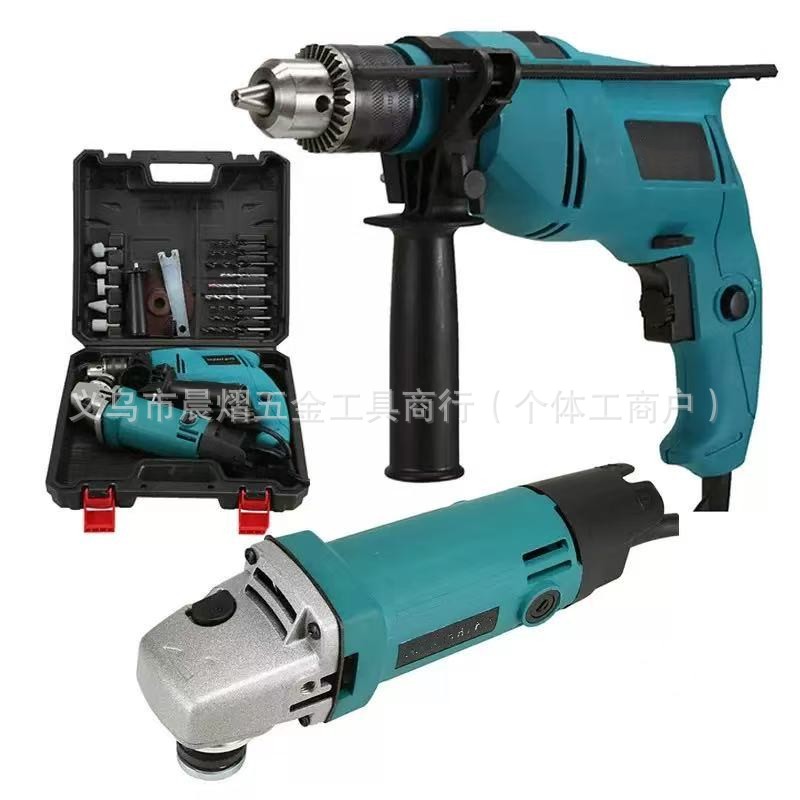 Set Alat Listrik Mesin Penggiling Sudut Bor Dampak Tangan Mesin Penggiling Bor Listrik Dua Set Alat Perdagangan Luar Negeri Lintas Batas