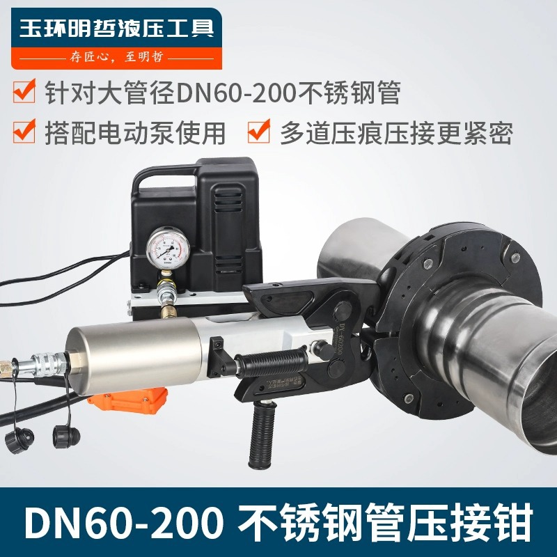 Penjepit pipa hidrolik listrik, alat penjepit portabel logam campuran cincin DN60-200, pipa stainless steel dinding tipis