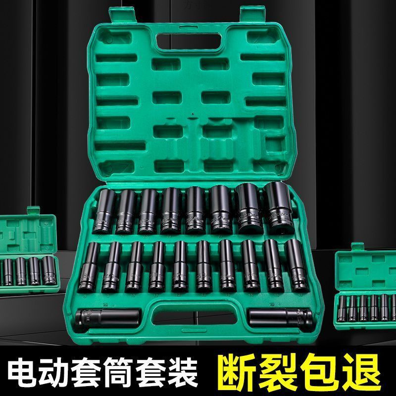 Kunci pas elektrik segi enam cermin 1/2, set 14 potong, lengan panjang, kunci pas elektrik heksagonal terbang besar, setelan kepala lengan antarmuka 12.5mm