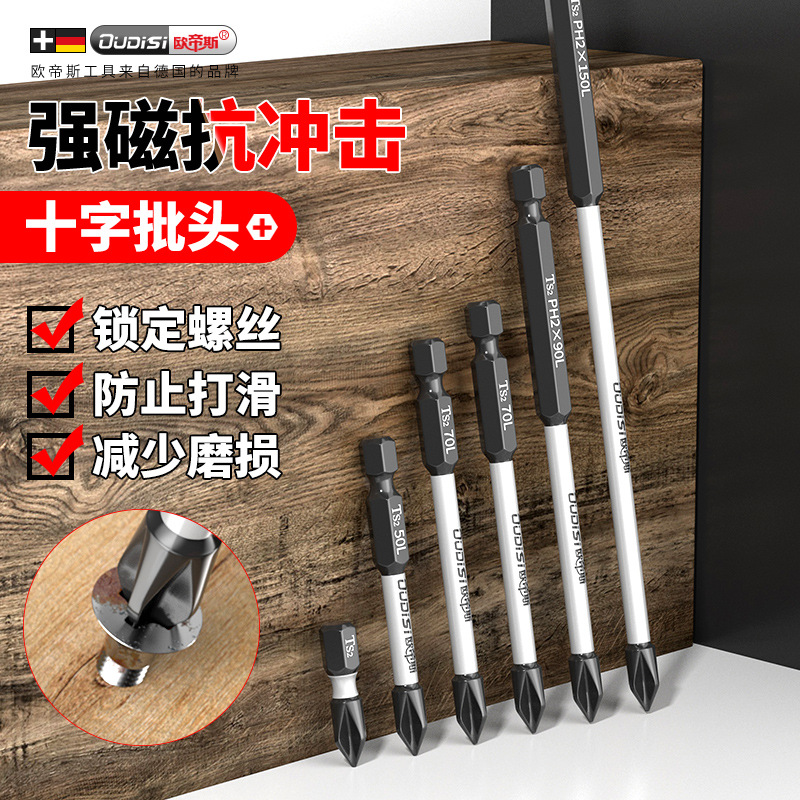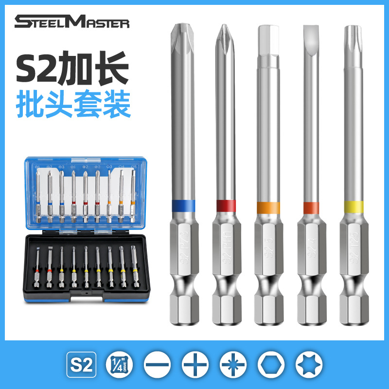 Obeng listrik, kepala obeng kuat magnetik diperpanjang anti selip setelan bor tangan kekerasan tinggi kepala silang