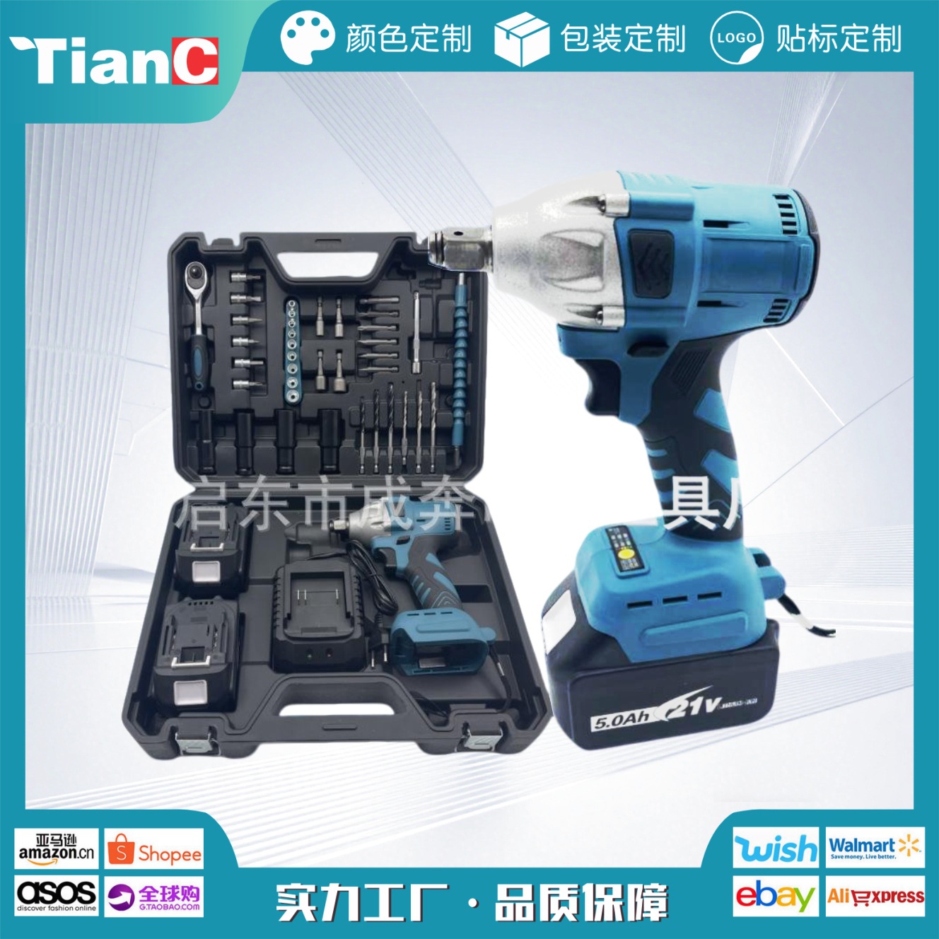 TianC kunci pas torsi listrik tanpa sikat, obeng listrik Lengan baterai lithium grosir