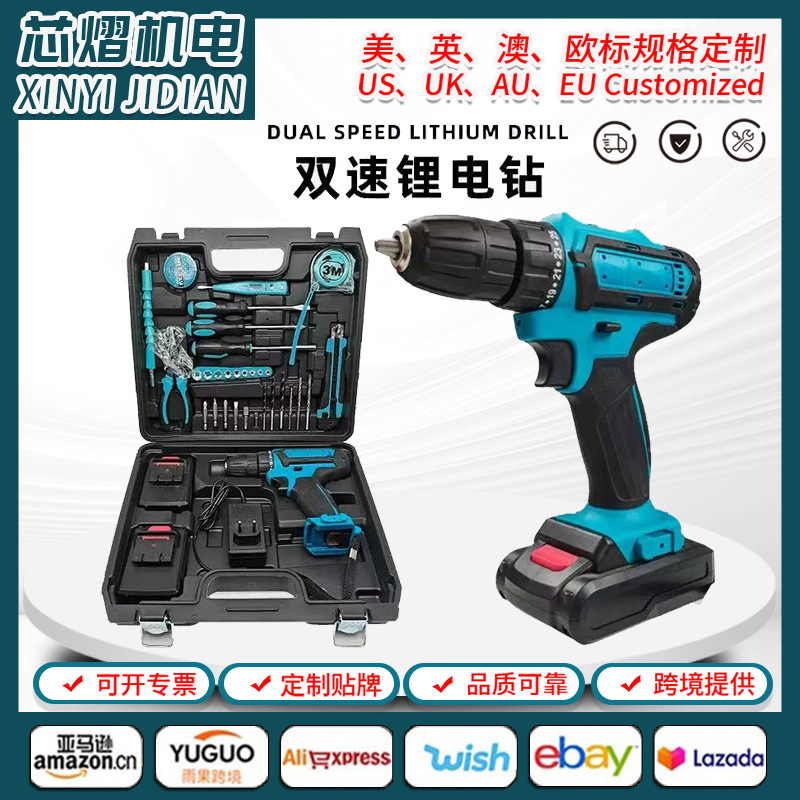 Lintas Batas 21V Multifungsi Lithium Bor Listrik Set Perdagangan Luar Negeri Bor Listrik Isi Ulang Rumah Produsen Bor Dampak Grosir