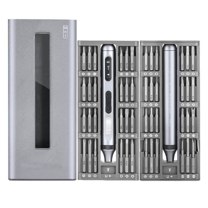Setelan obeng listrik 50 dalam 1, kepala obeng alat bongkar pasang komputer ponsel, lengan alat perbaikan obeng listrik