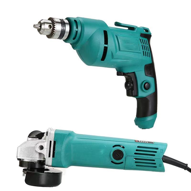 Bor tangan penggiling sudut dua buah, setelan kotak alat gerinda sudut bor listrik dua potong