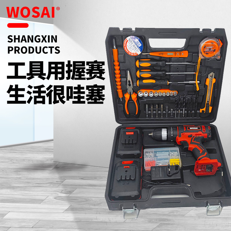 Set Kotak Alat Peralatan Rumah Tangga Perangkat Keras Multifungsi Tukang Listrik Perbaikan Mobil Tukang Kayu Kotak Alat Listrik Bor Listrik Penuh Hati