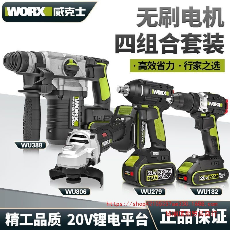 Wick WU388 Brushless Lithium Power Hammer Daya Tinggi Mesin Penggiling Sudut Bor Impact Set Bor Listrik Kunci Pas