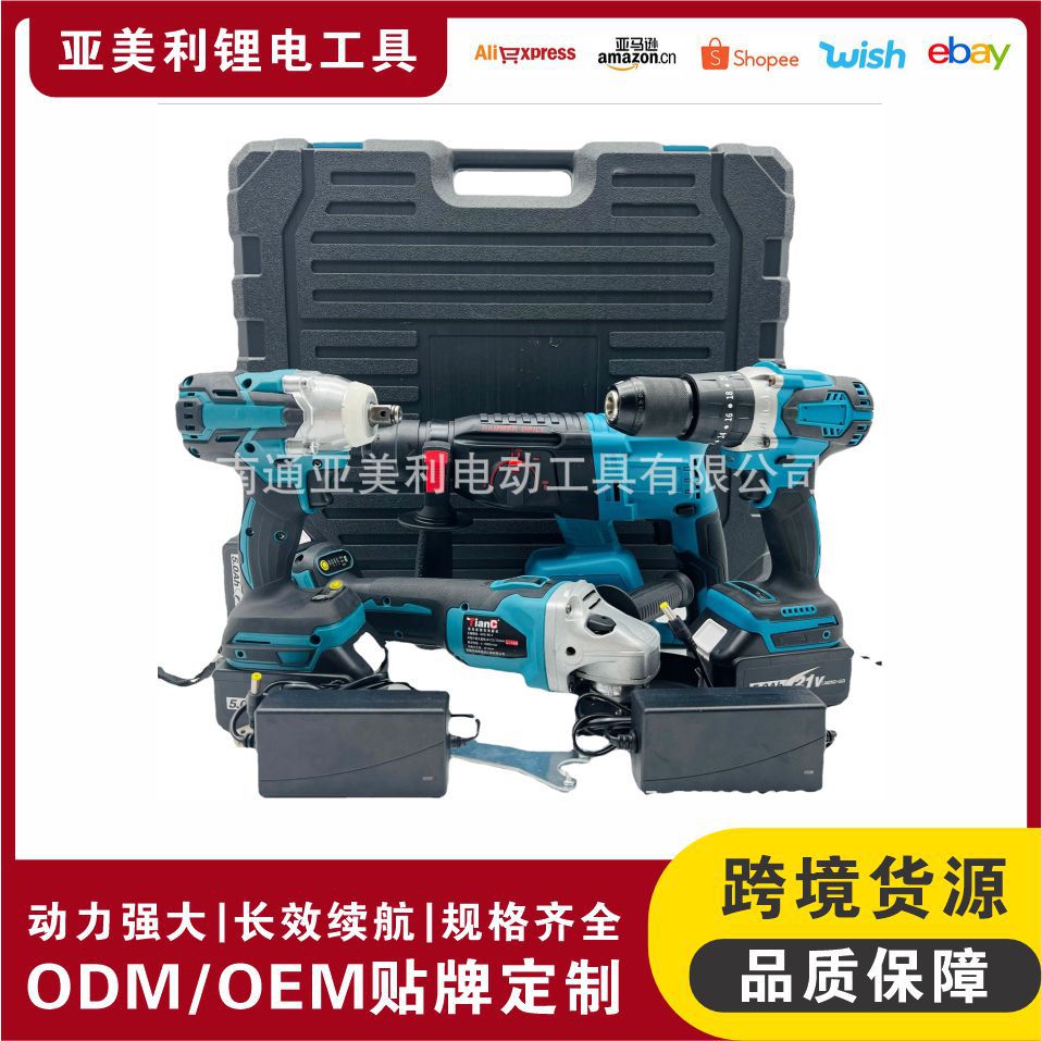 Bor listrik empat-dalam-satu set, bor listrik tanpa sikat, bor impact elektrik Lithium dengan sudut penggiling, baterai kunci pas tangan