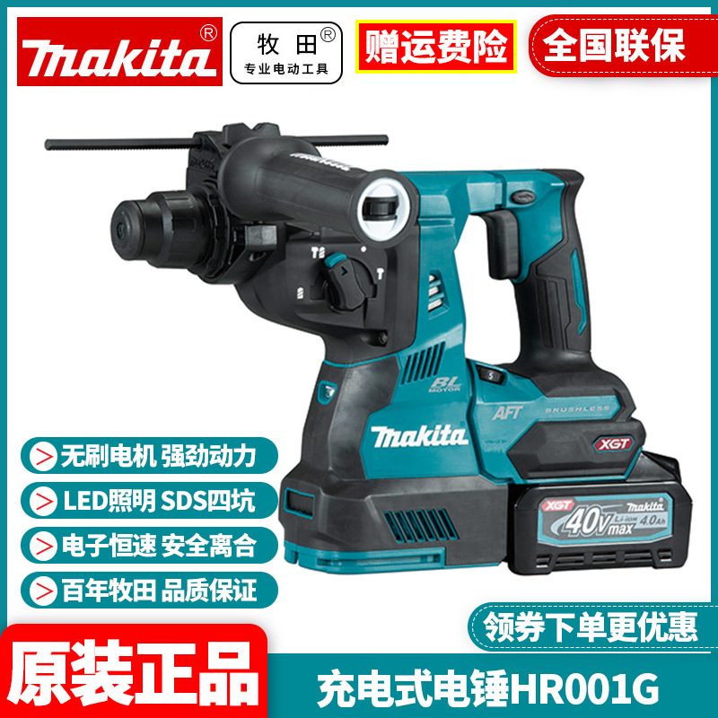 Mutian Makita40V palu listrik Lithium, palu listrik pengisian daya, bor palu nirkabel baterai lithium HR001/HR003