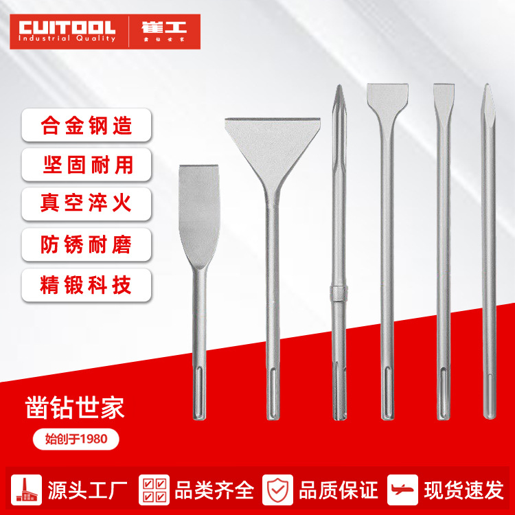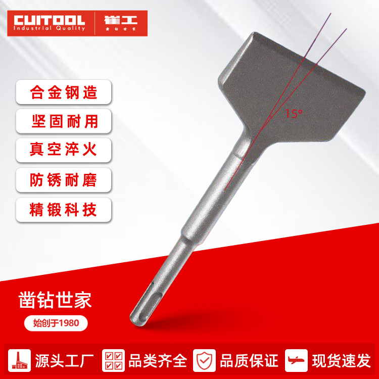 Grosir pahat datar melengkung pegangan bulat, sekop empat lubang dekorasi dinding bata pembersih lantai lintas batas palu listrik pahat baja
