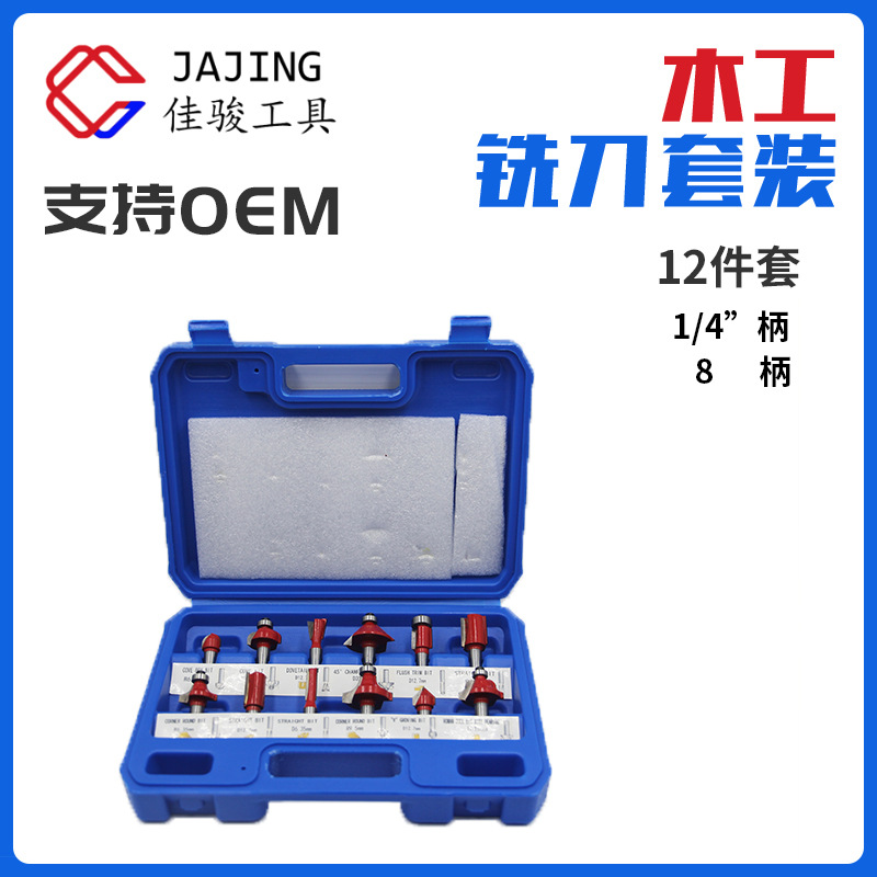 1/4 menangani 12-piece set 15-piece woodworking milling cutter suit mesin pemangkas kepala mesin ukir untuk Bakelite penggilingan