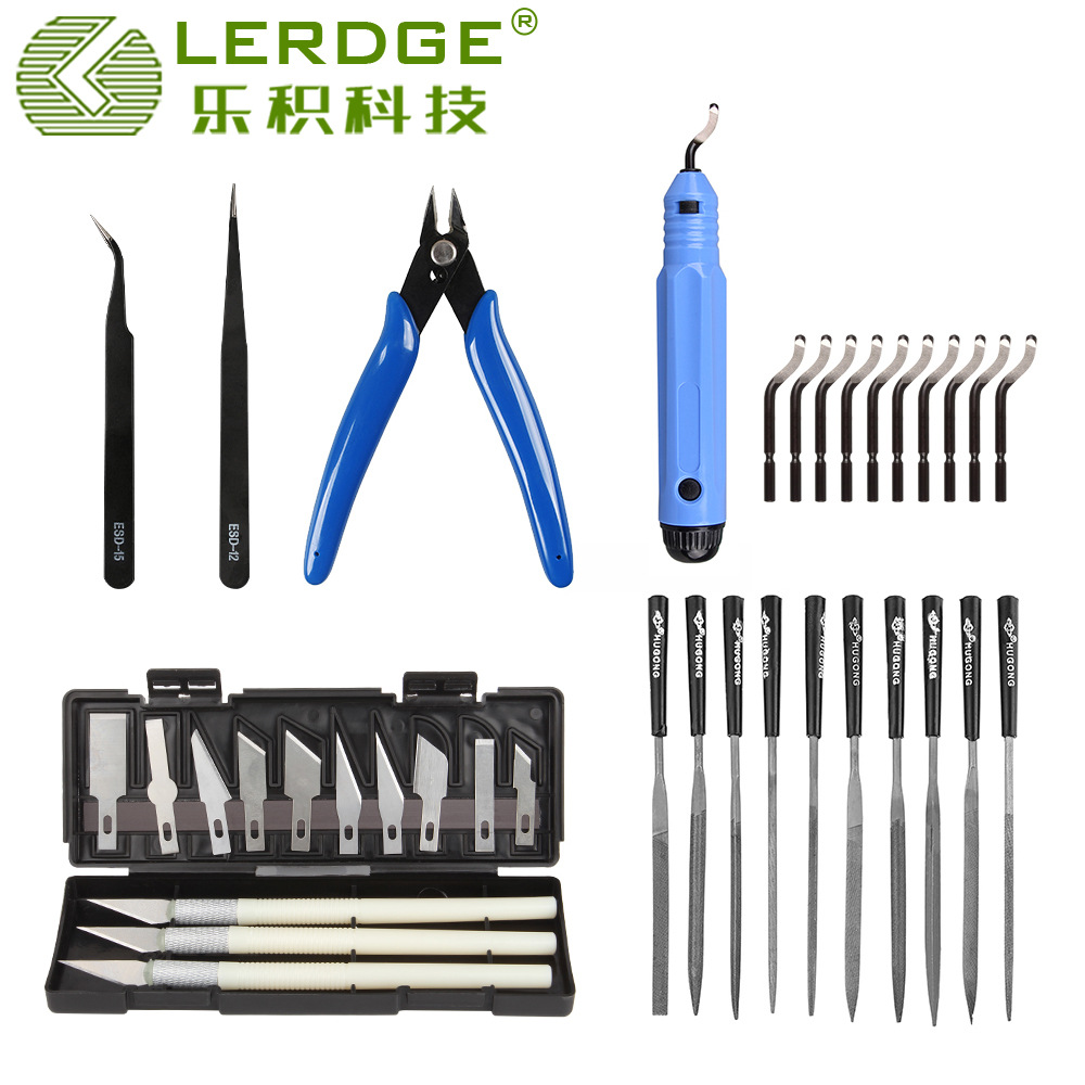 Leji kit alat pembersih model cetak 3D, pisau ukir kikir pisau pemangkas pinset, tang pemoles pemangkasan