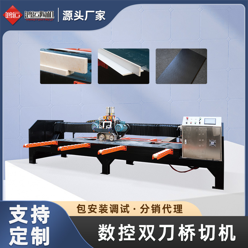 Hongyun mesin pemotong jembatan pisau ganda CNC, mesin pemotong lurus potongan piring besar keramik desktop besar penawaran khusus 3200