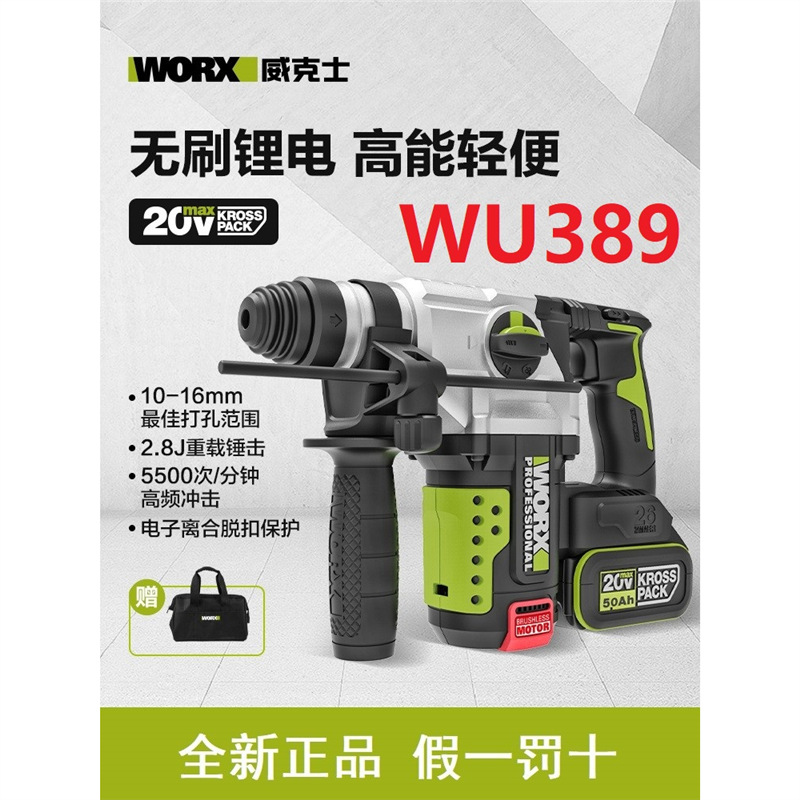 Wicks Lithium Power Hammer WU389 Bor Listrik Isi Ulang Bor Palu Bor Listrik Pick Tangan Pukulan Sabuk Pelubang Melesat Tanpa Sikat Bor Dampak