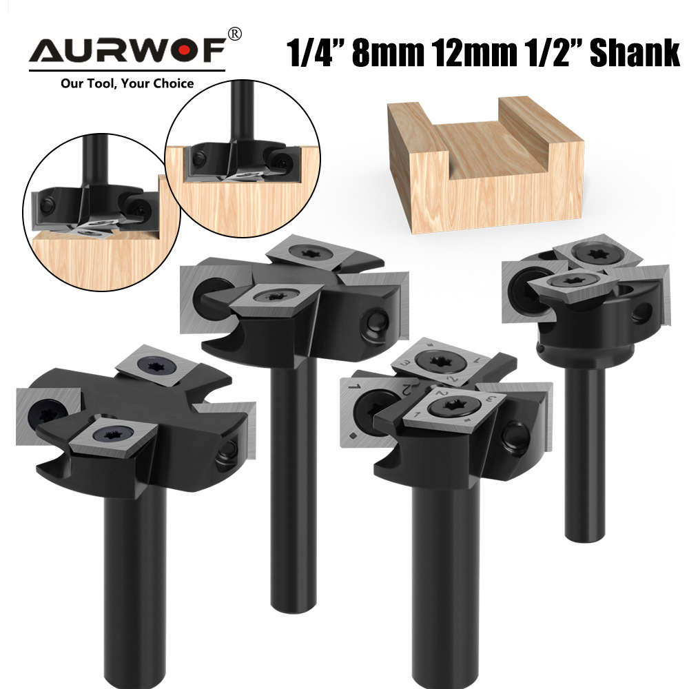 1/4 shank 8 shank 12 handle 1/2 pisau pelat rusak empat tepi pemotong slot hitam