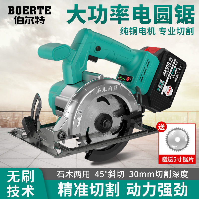 Mesin pemotong elektrik portabel, gergaji listrik portabel tanpa sikat 5 inci, baterai lithium pekerjaan kayu