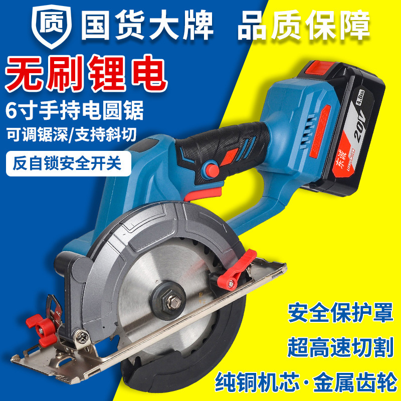 Gergaji bundar listrik tanpa sikat, gergaji dapur elektrik Lithium 6 inci, mesin pemotong kayu portabel, mesin gergaji bundar