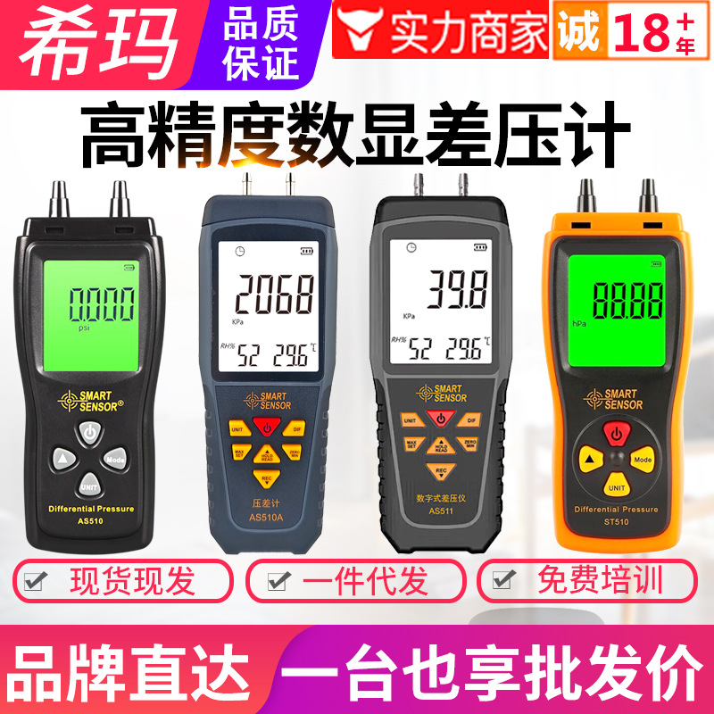 Hima pengukur tekanan digital AS510, pengukur tekanan digital, meteran tekanan diferensial presisi tinggi, instrumen uji tekanan diferensial pipa