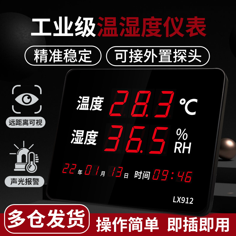 Alat ukur temperatur dan kelembapan, pengukur temperatur dan kelembapan digital elektronik gudang rumah kaca presisi tinggi industri LX912