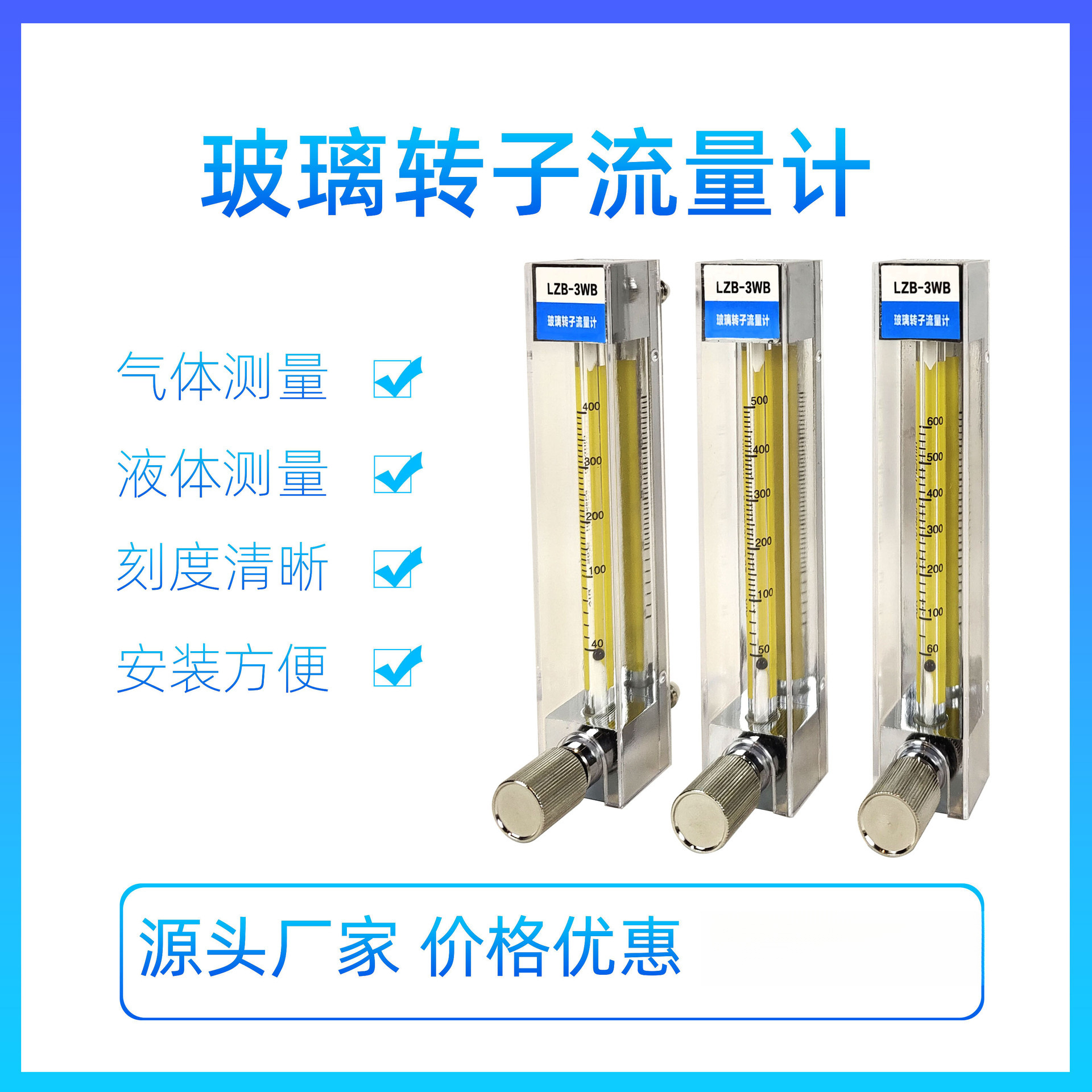 Kaca rotor flow meter LZB-3WB/4WB/6WB/10WB gas cair flow meter