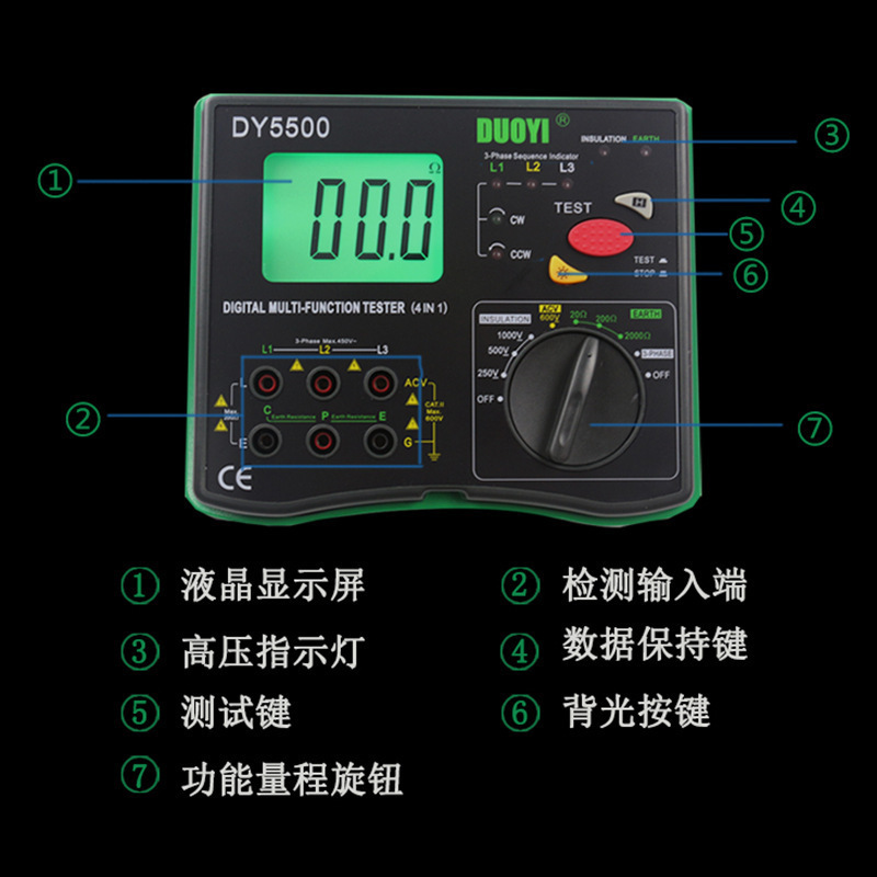 Satu DY5500 multi-fungsi instrumen pentanahan digital pengukuran distribusi tegangan urutan fase