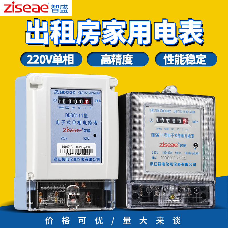 Zhisheng elektronik fase tunggal meteran listrik 220v satu kamar sewa 20a rumah tangga 40a meter listrik fase tunggal presisi tinggi
