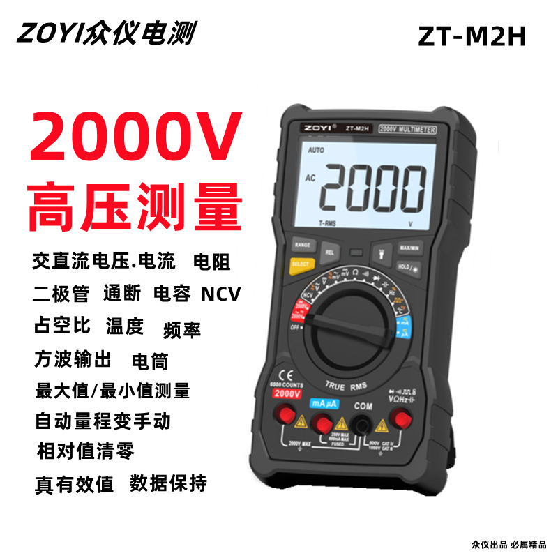 ZOYI Zhongyi multimeter digital presisi tinggi 2000v multimeter digital ZT-M2H fotovoltaik meteran universal Ahli listrik tambang