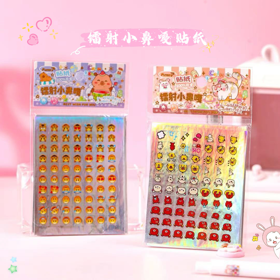 Stiker Stiker Laser Hidung Kecil Stiker Buku Tangan Mini Anak-anak Stiker Stiker Kuku Hiasi Bahan Stiker Pola Kecil Grosir