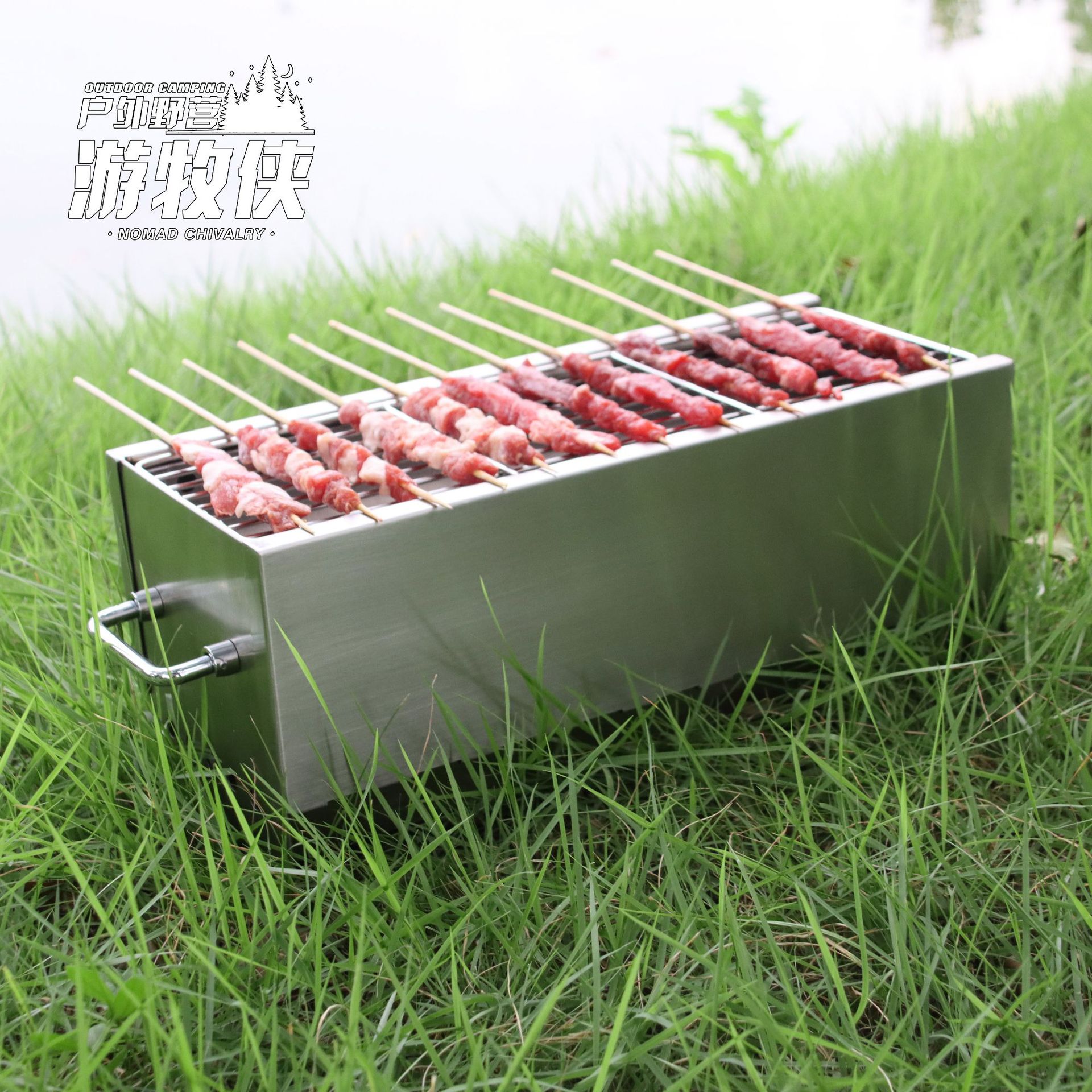 304 pemanggang barbekyu, kompor luar ruangan portabel bahan baja tahan karat