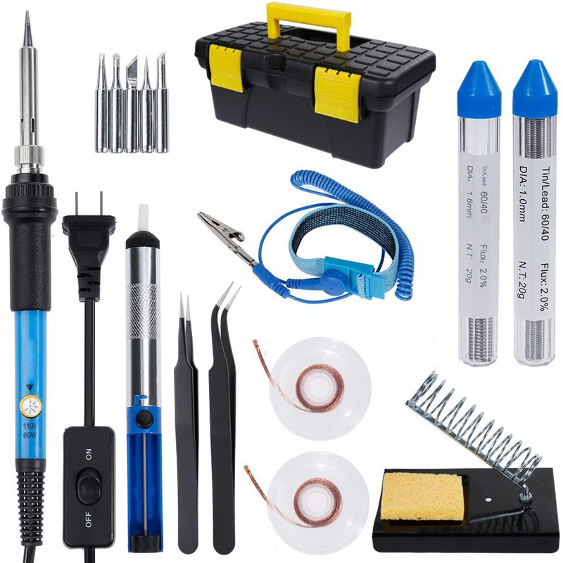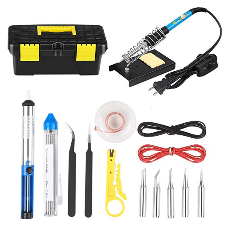 Solder besi 60W, solder listrik besi perbaikan kotak alat dengan pengisap timah kaca pembesar obeng kawat timah