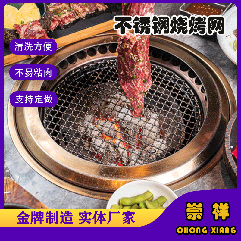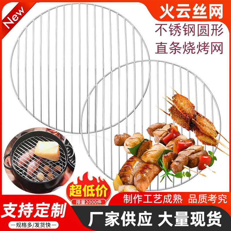 Jaring barbekyu bulat 304 baja tahan karat panggangan barbekyu jaring pengeriting jaring panggangan barbekyu Korea jaring baki kue
