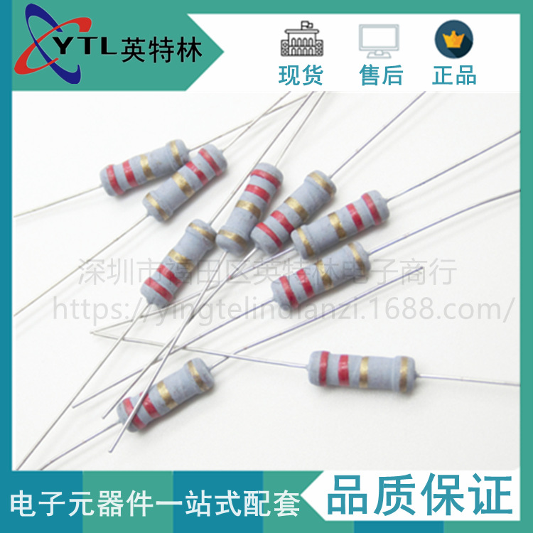 直插1/2W金属膜电阻0.5W 47R 1K 1K2 1K3 1K5 1K6 2K2 编带±1%
