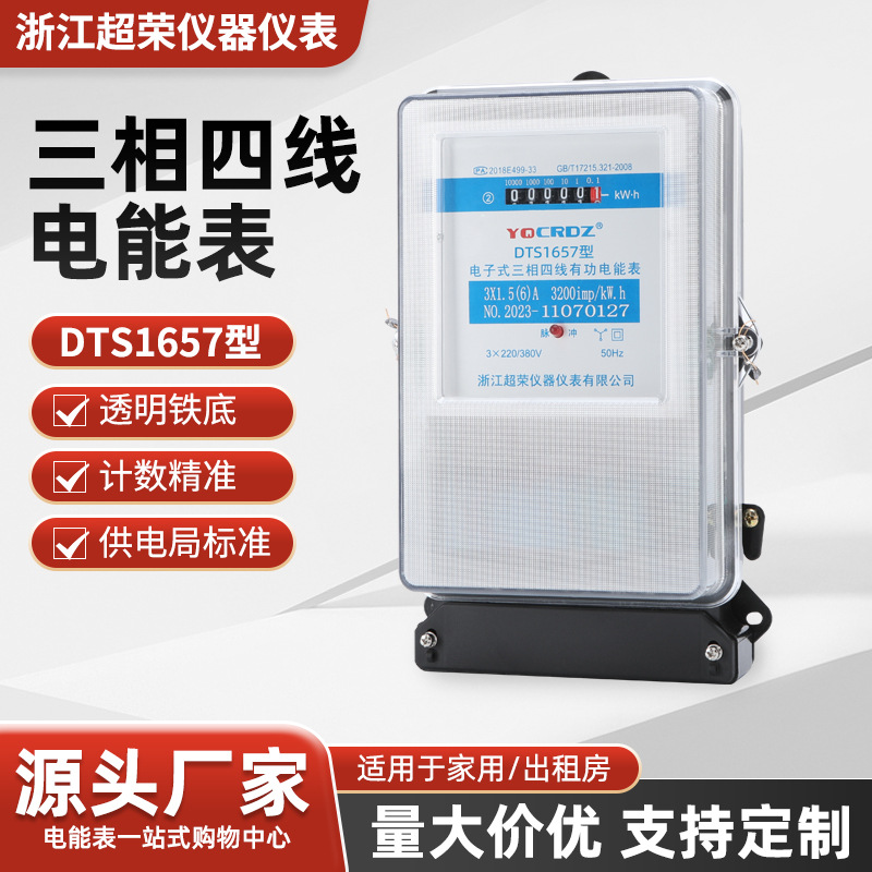 Meteran listrik tiga fase, pengukur daya aktif, pengukur elektronik tipe transformer DTS1657 bawah besi, empat kawat 380V