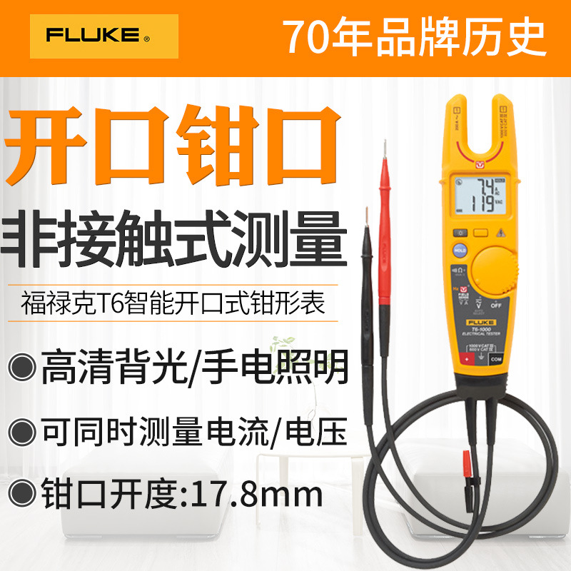 Fluke T5-600/garpu 1000/meteran jepit terbuka T6-600/1000 meteran penjepit tegangan non-kontak