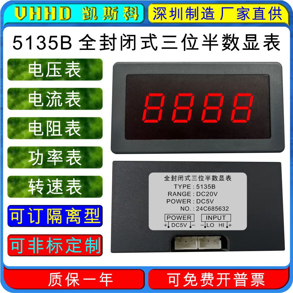 Penjualan langsung dari pabrik VHHD 5135B kepala takometer daya resistansi arus tegangan tampilan semi-digital tiga posisi tertutup penuh
