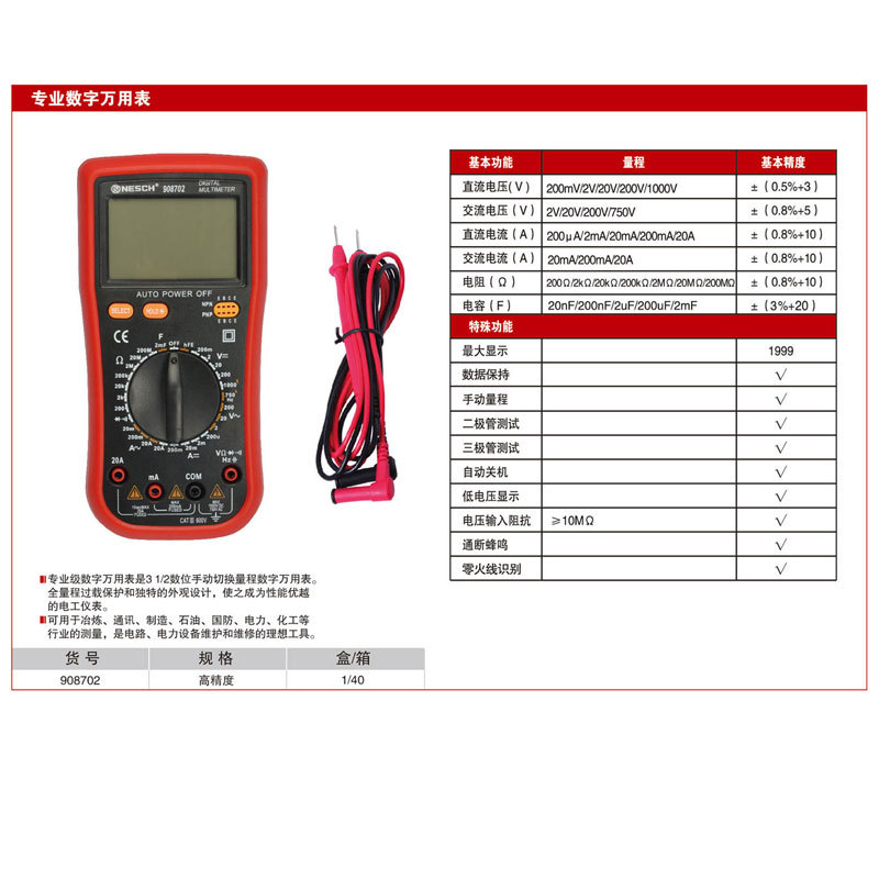Naishi alat multimeter digital, 908702 Alat multimeter digital profesional presisi tinggi Naishi