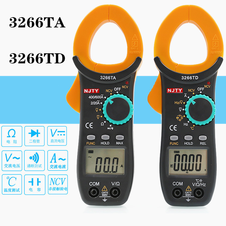 Tianyu meteran genggam digital, meteran jepit digital multimeter, klem anti bakar, layar besar, ti3266td
