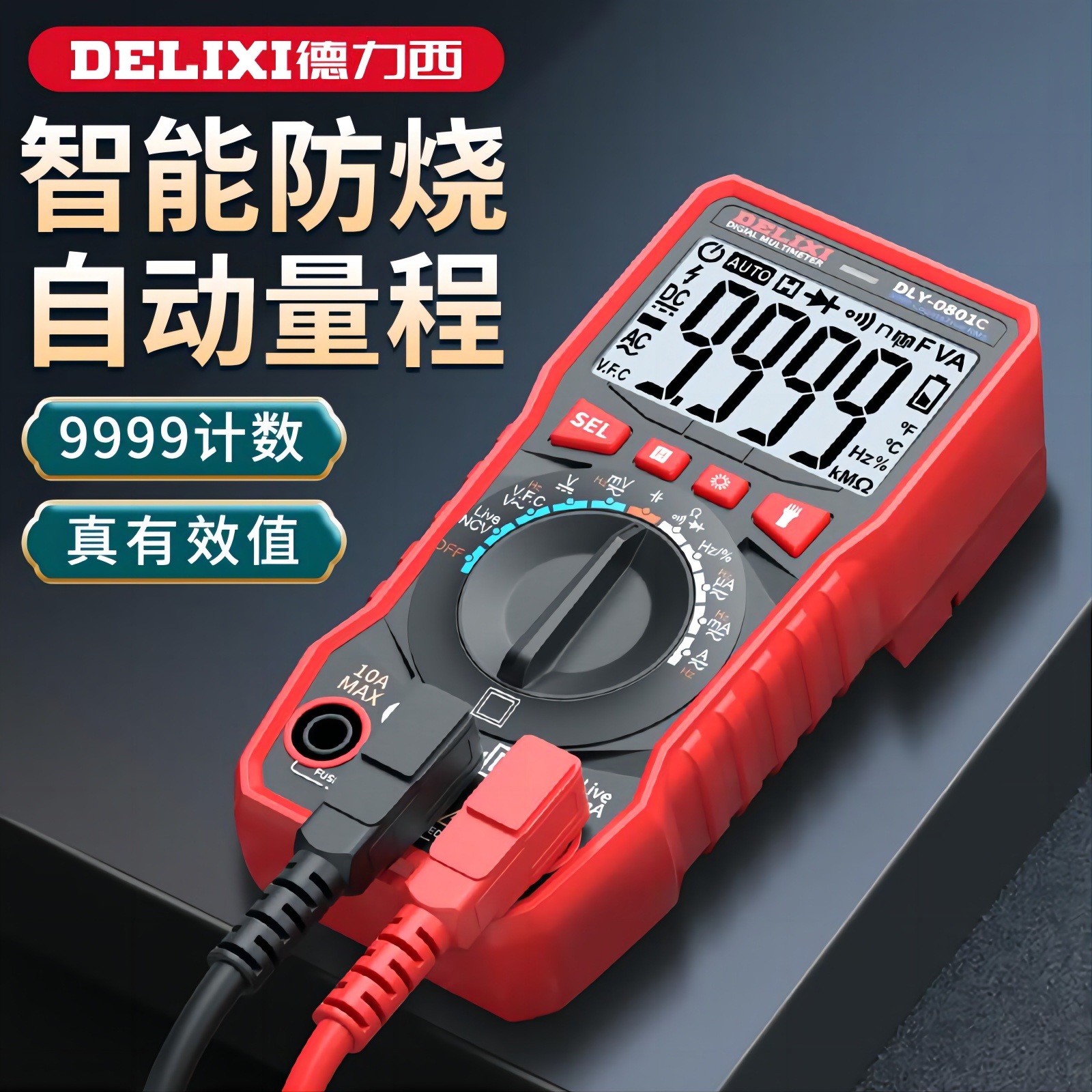 Delixi multimeter digital multifungsi tampilan digital universal 0801 cerdas tegangan AC/DC ammeter grosir