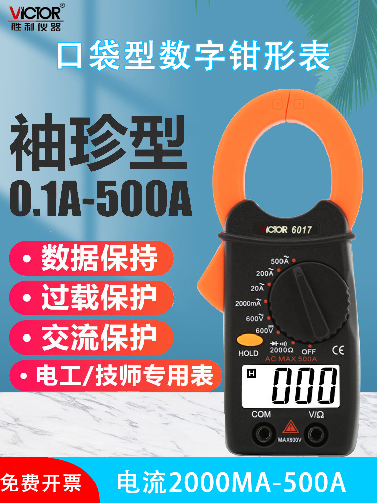 Victory penjepit multimeter digital, instrumen pengukur klem saku VC6017 0. 1a-500A