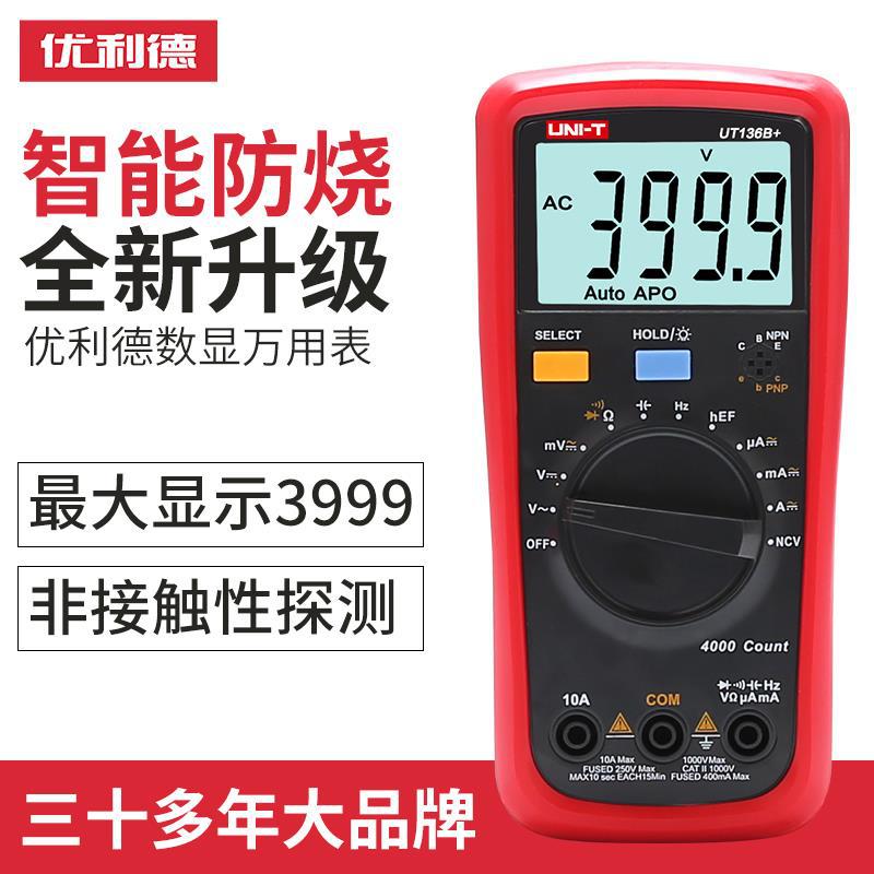 Unide UT136B + multimeter digital anti-bakar, pengukur uji otomatis universal presisi tinggi