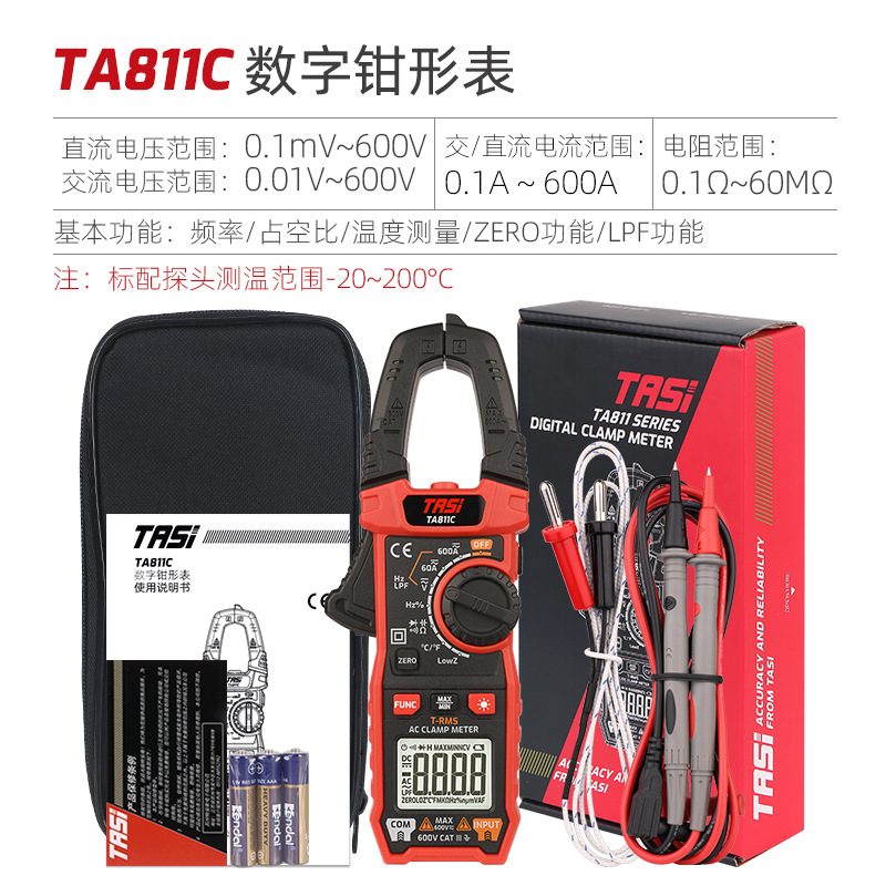 Tenas TA811C meteran jepit digital, multimeter presisi tinggi antibakar otomatis AC/DC TA811A/B