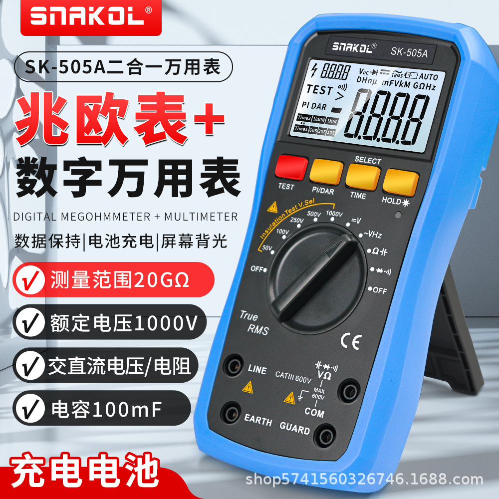 Sneico SK-505A uji ketahanan isolasi digital multimeter dua dalam satu presisi tinggi jam perbaikan mobil energi baru