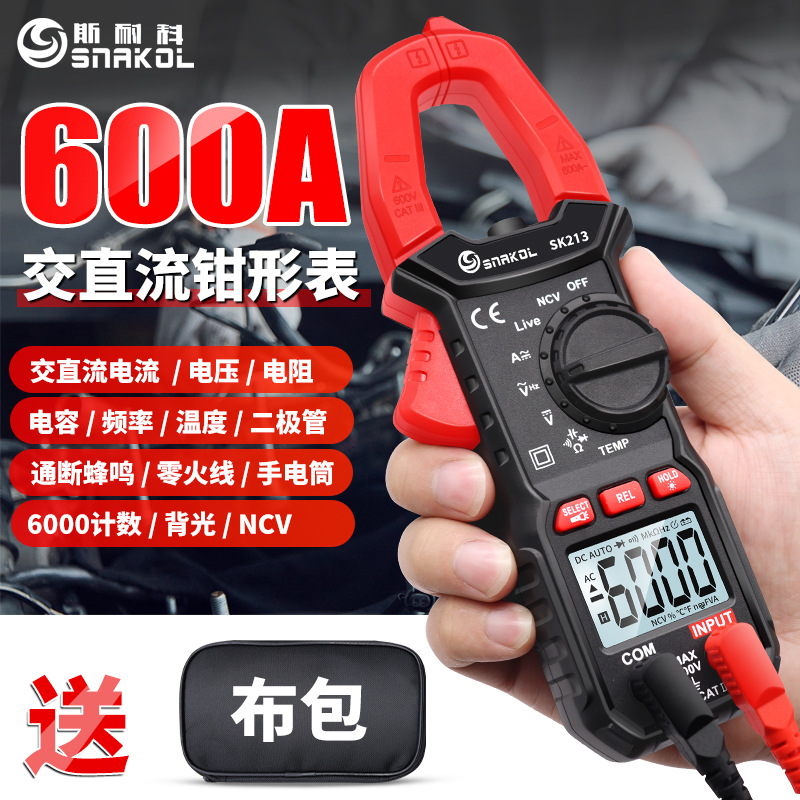 Snaike SK213 clamp ammeter, penjepit meter digital otomatis universal cerdas AC/DC 600A