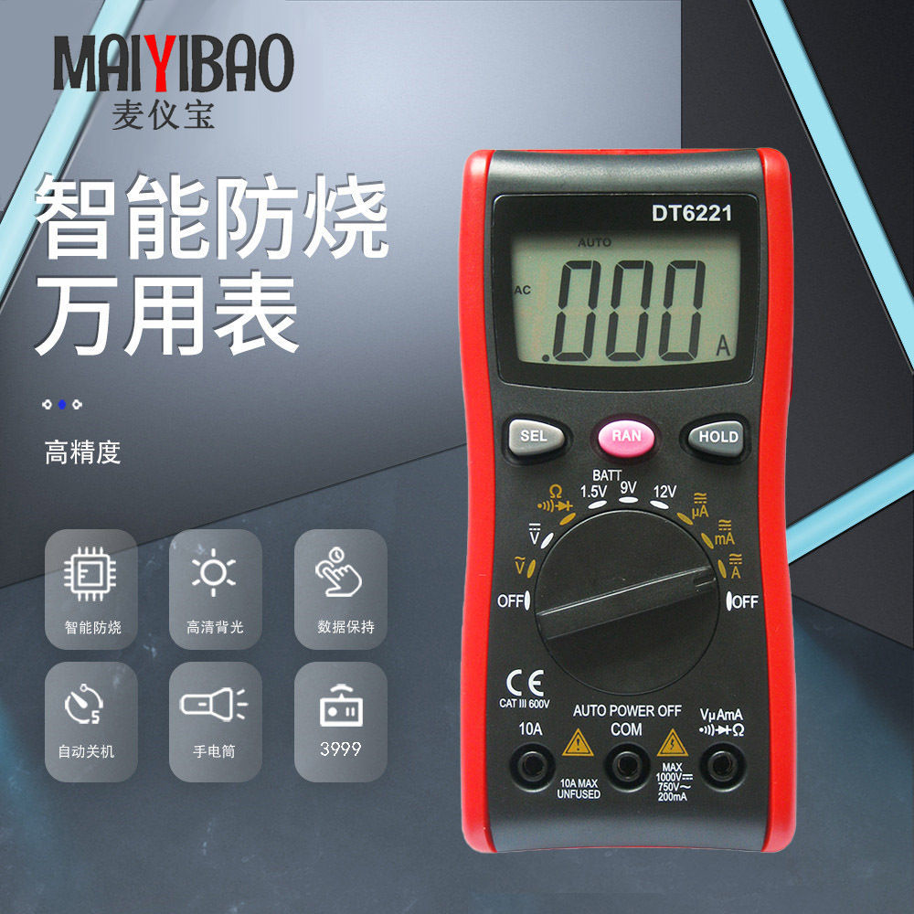Mai Yibao VC9805 Multimeter Digital, Multimeter Digital layar besar otomatis universal untuk rumah tangga